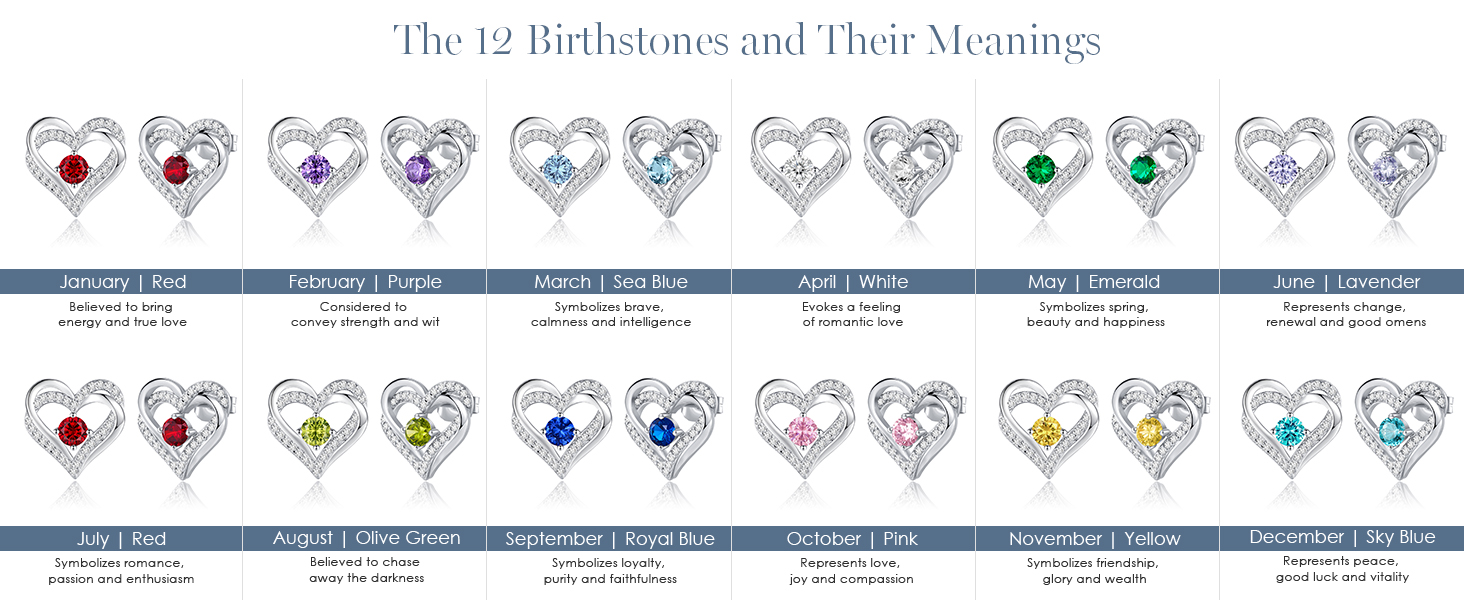 ❤ THE 12-MONTH BIRTHDAY STONES ❤ There are 12 different colors of gemstones, corresponding to the birthstone of each month. You can choose the color according to the birth month. Ruby in July means passion, kindness and dignity. Olivine in August means happiness. Sapphire in September means love, honesty, virtue. Tourmaline in October means joy and peace. Topaz in November means friendship and hope. Tanzanite in December means victory, good luck and success.