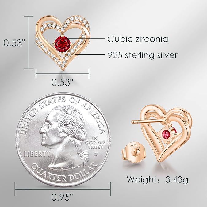 ❤UNIQUE HEART-SHAPE DESIGN❤ The 2020 birthstone earrings feature an interlocking heart design that symbolizes love for each other. The heart stud earrings are sparkling Mother’s Day gifts for mom or grandmother, Valentine’s Day gifts for girlfriend or anniversary gifts for wife, Christmas gifts for girlfriend and best friend to express your love and commitment.