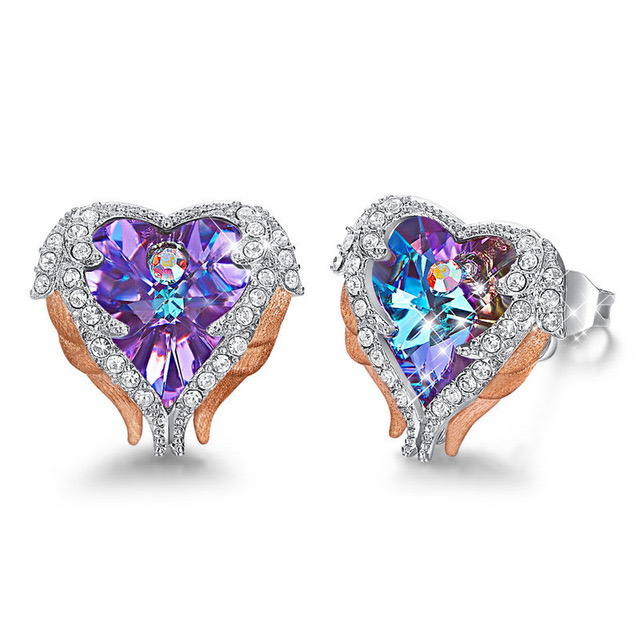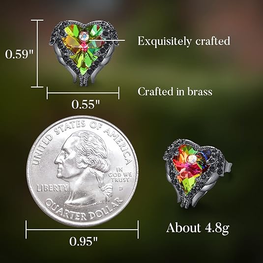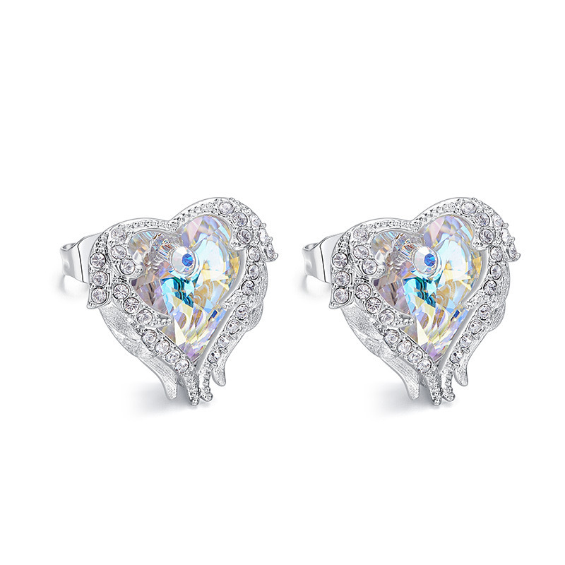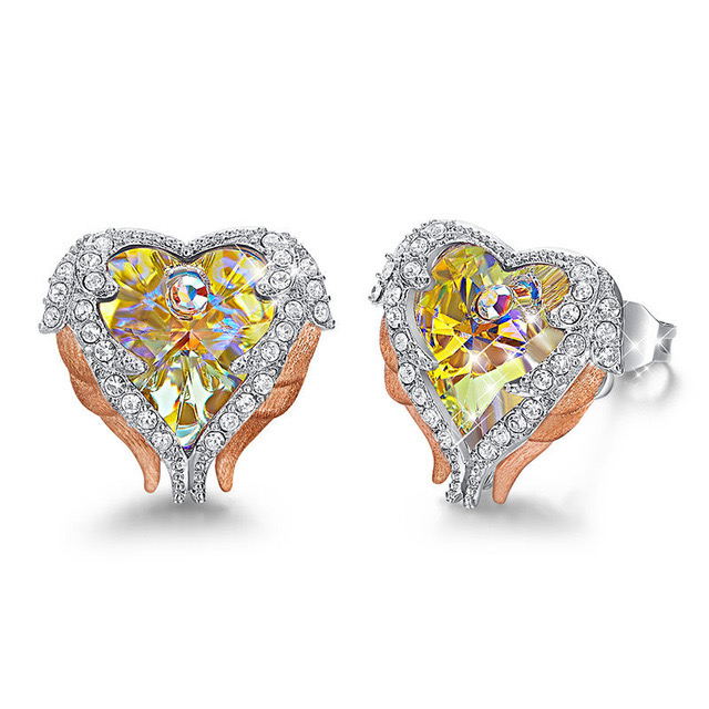♥CRAFTSMENSHIP♥ Heart-shaped Crystal wrapped in a wing which is the core of the angel wing design. Top Metal Electroplating Technique, using platinum plating & never fade, lasting sheen.