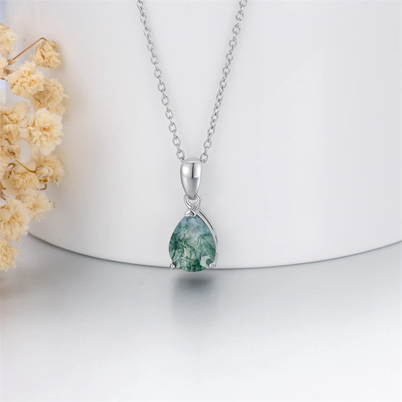 Material Stone : Natural Moss Agate. Stone Size : 1.5 Ct, 7*9 mm, Pear-Cut. Silver chain length: 16+2 inches, which will comfortably fit all neck sizes.?