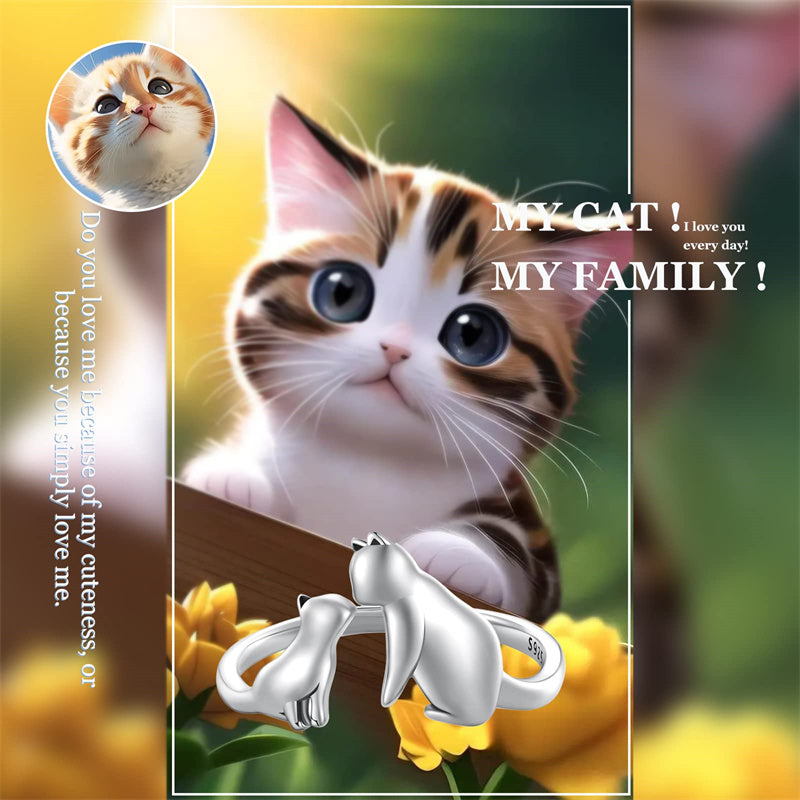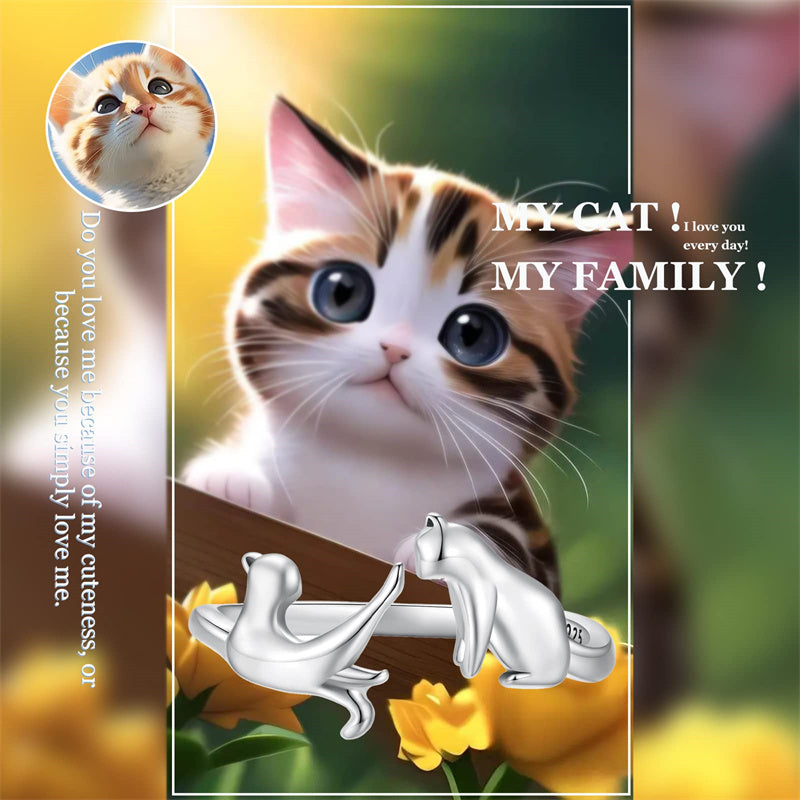 Cute Cat - Gift for Pet Lovers! Cute pet open adjustable ring, let your pet close to your heart, comfort you! They are forever your family!!!