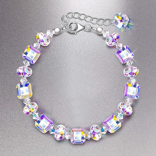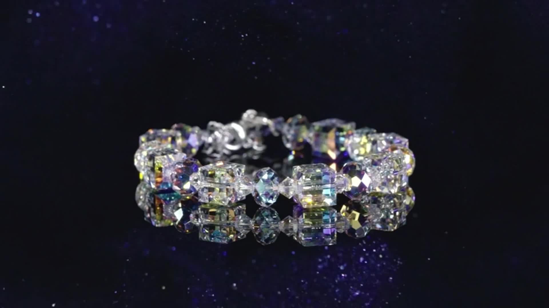 This delicate bracelet used a faceted clear Aurora Borealis Crystals which reflects the light in every colour of the rainbow and shines in a very beautiful flame. Pure and clear, sculpting your unique radiance.