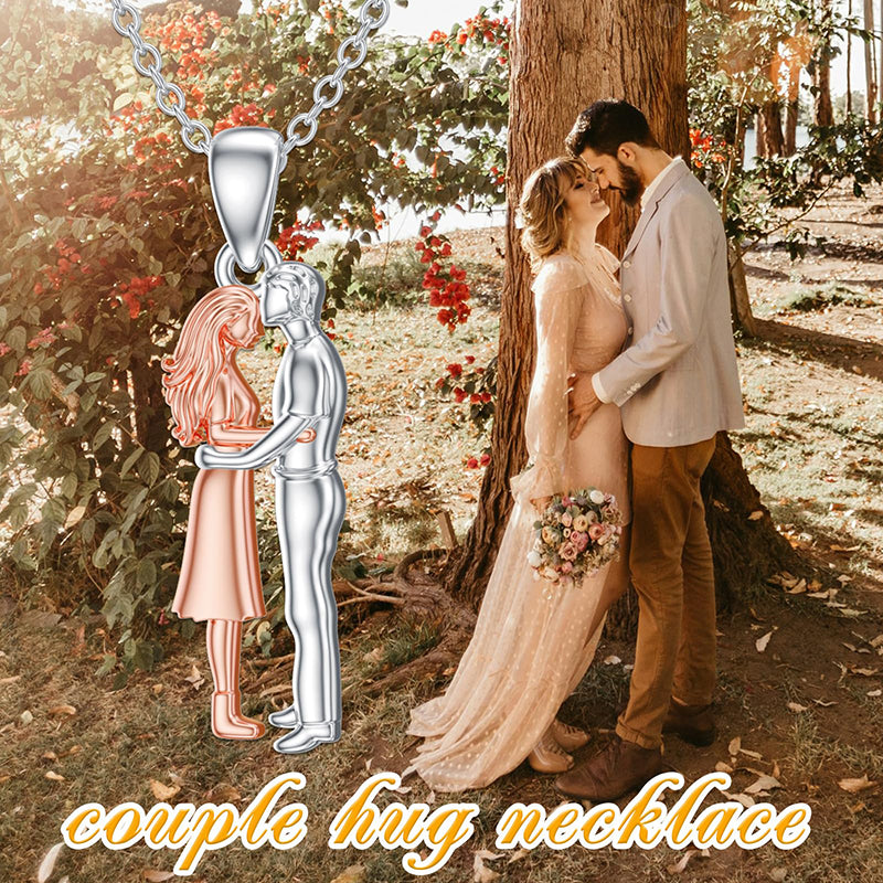 Sterling Silver Hug Couple Pendant Necklace Gift