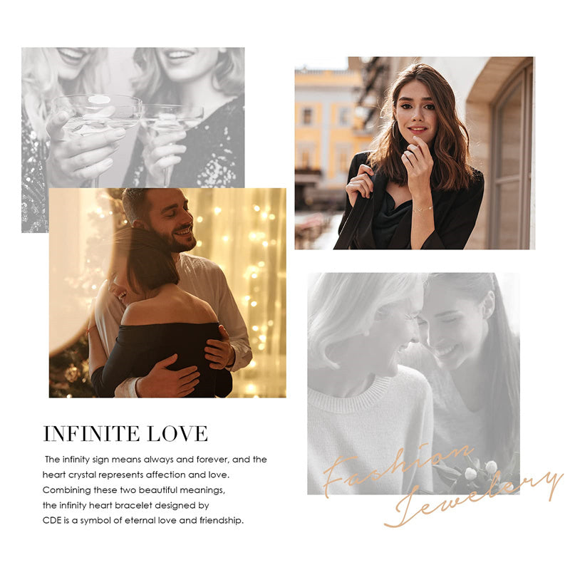 DESIGN IDEA:The infinity sign means always and forever, and the heart crystal represents affection and love. Combining these two beautiful meanings, the infinity heart bracelet designed by CDE is a symbol of eternal love and friendship.