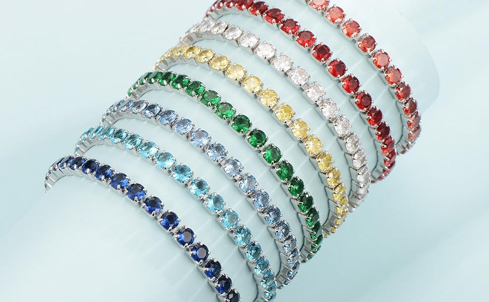 ❤️Tennis Bracelets for Women❤️: MADE WITH LOVE. Tennis bracelet featuring round 2.5mm created birthstones in four-prong basket settings. Measures up to 9.5 inches in Length.