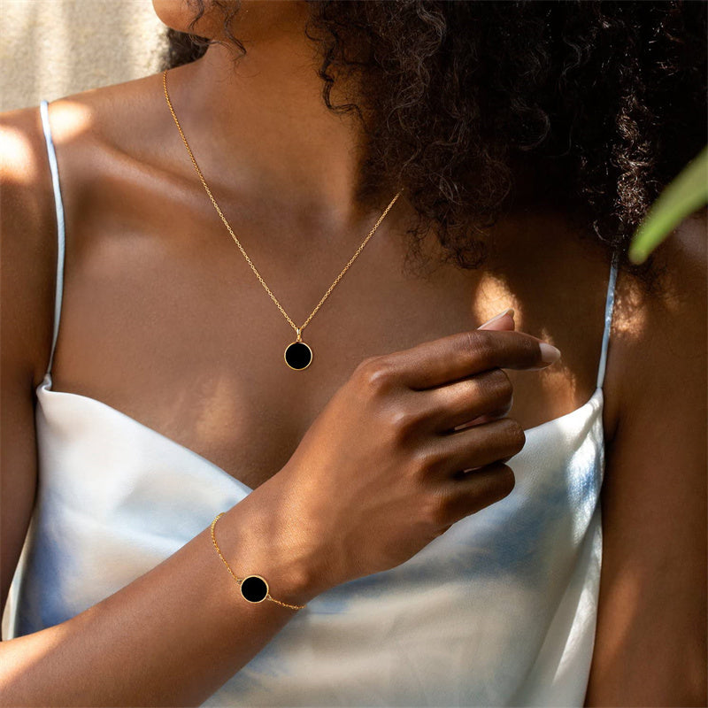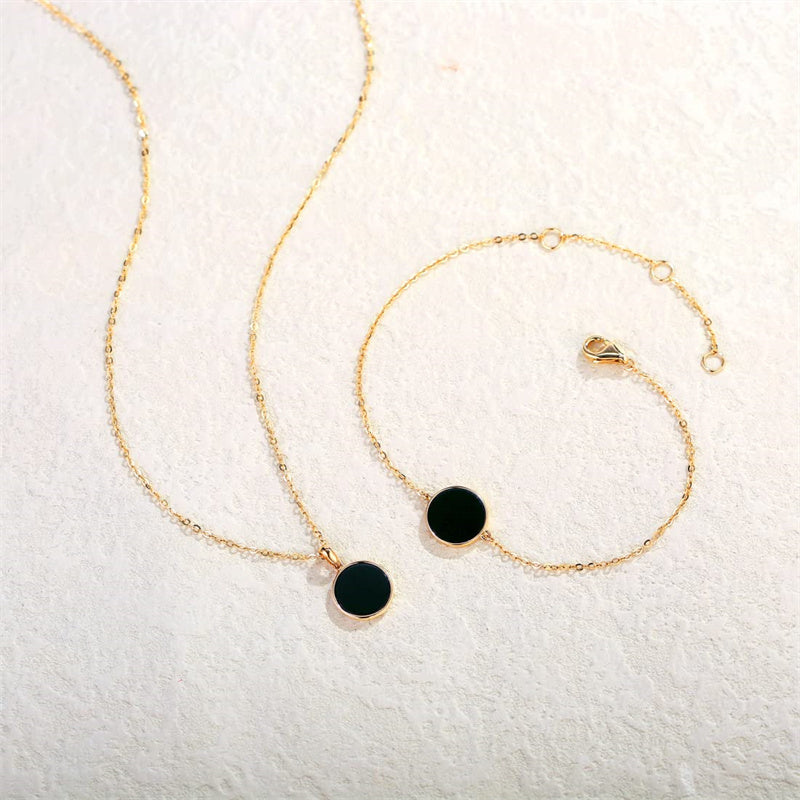 Real Gold Necklace: Made of 14K Solid Yellow Gold and Genuine Black Onyx. Chain Length: 16"+2" Extender for Adjusting. Pendant Size: Diameter 0.4". Weight: 1.8g.