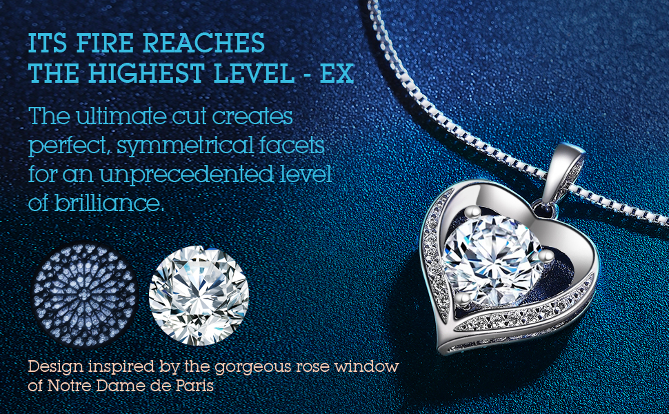 UNPRECEDENTED BRILLIANCE - The cut design of the moissanite was inspired by the gorgeous rose window of Notre Dame Cathedral, this design features extreme cutting that creates perfect, symmetrical facets, resulting in unprecedented extreme brilliance. Its fire reaches the highest level - EX level. Each moissanite has its own code, which can be seen with a magnifying glass, proving its authenticity and your ownership of this precious necklace.