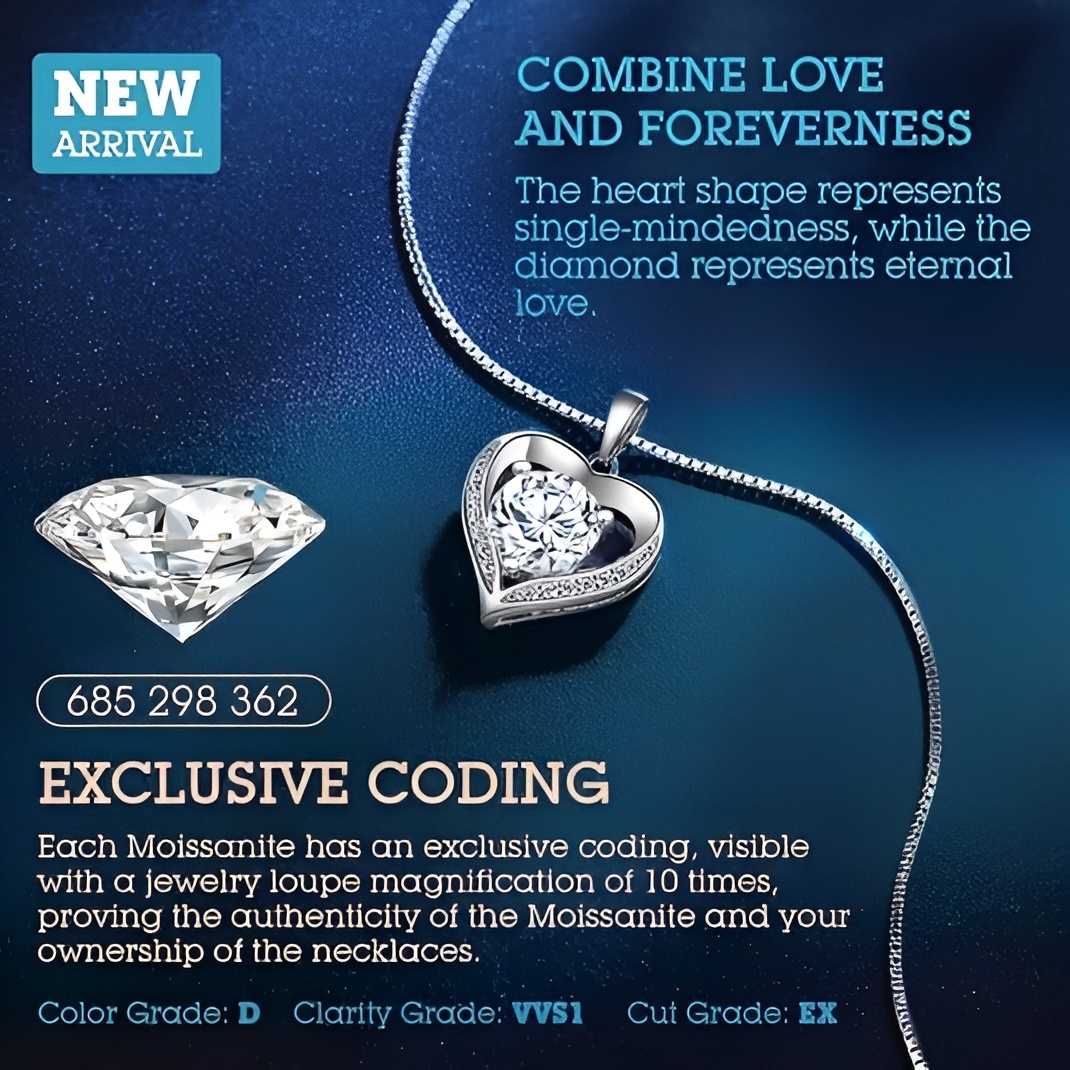 COMBINE LOVE AND FOREVERNESS - Express your love with this exquisite heart-shaped moissanite necklace, delicately engraved with the words "I LOVE YOU". The heart shape represents single-mindedness, while the diamond represents eternal love. Made of moissanite, this necklace never loses its brilliance or fire, and its diamonds are nearly indistinguishable from natural diamonds (except for the price, of course).
