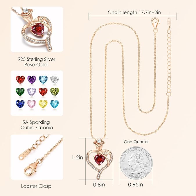 💕 12-MONTH BIRTHSTONE💕 EACH MONTH IS REPRESENTED BY 12 DIFFERENT COLORED BIRTHSTONES. A gem-quality cubic stone is embellished in the middle of the pendant, with high precision and fine cutting, it reflects extraordinary brilliance. The wearing of rose gold birthstone jewelry necklace also can be bring good luck, health, and protection.