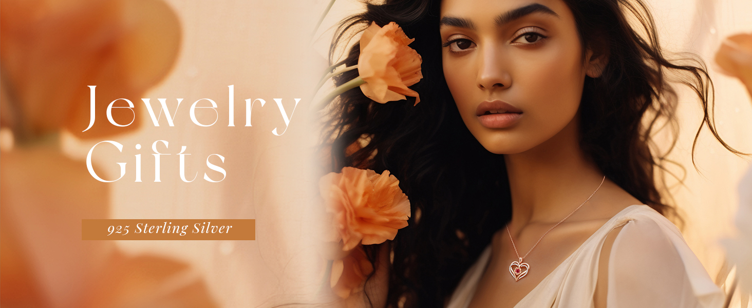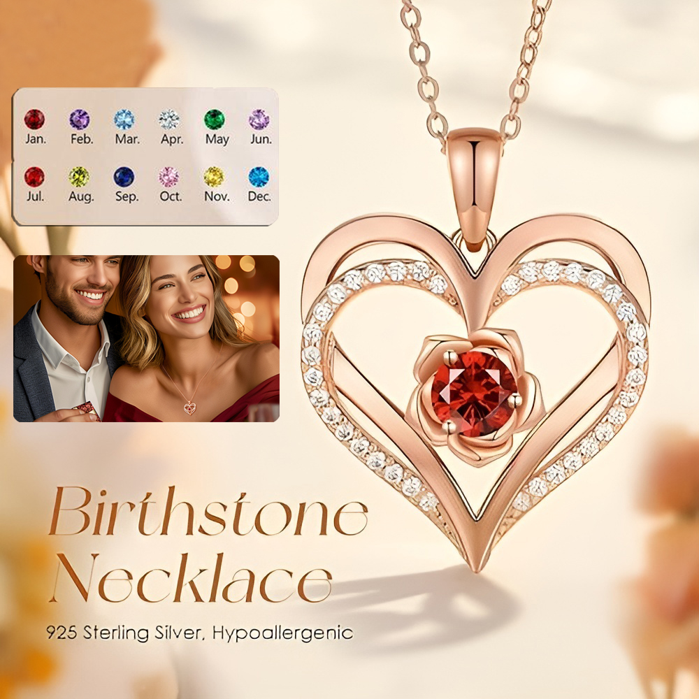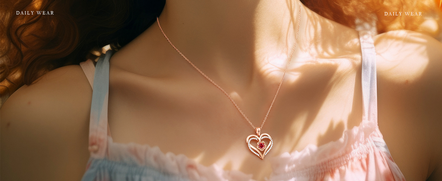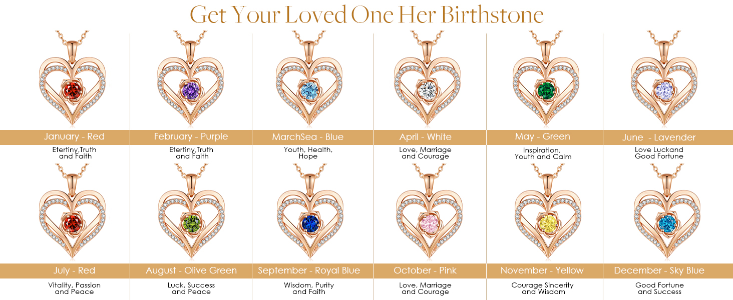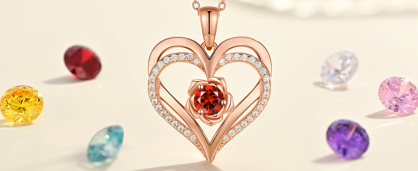 ❤ Unique design: Double heart necklace with birthstone crystal - The infinite love heart pendant necklace is made of 925 sterling silver, plated with rhodium and rose gold, lead-free, nickel-free, hypoallergenic, and oxidation resistant.