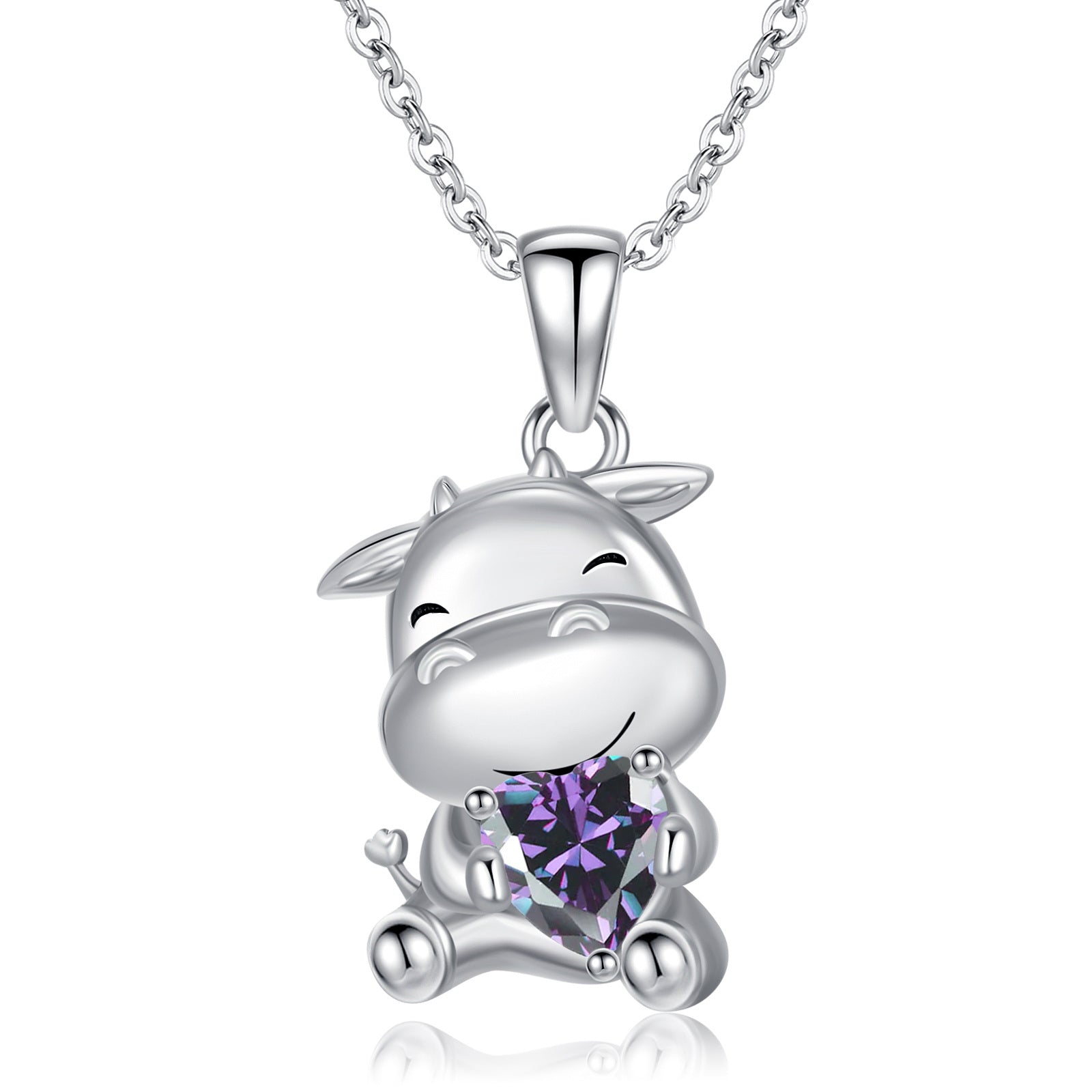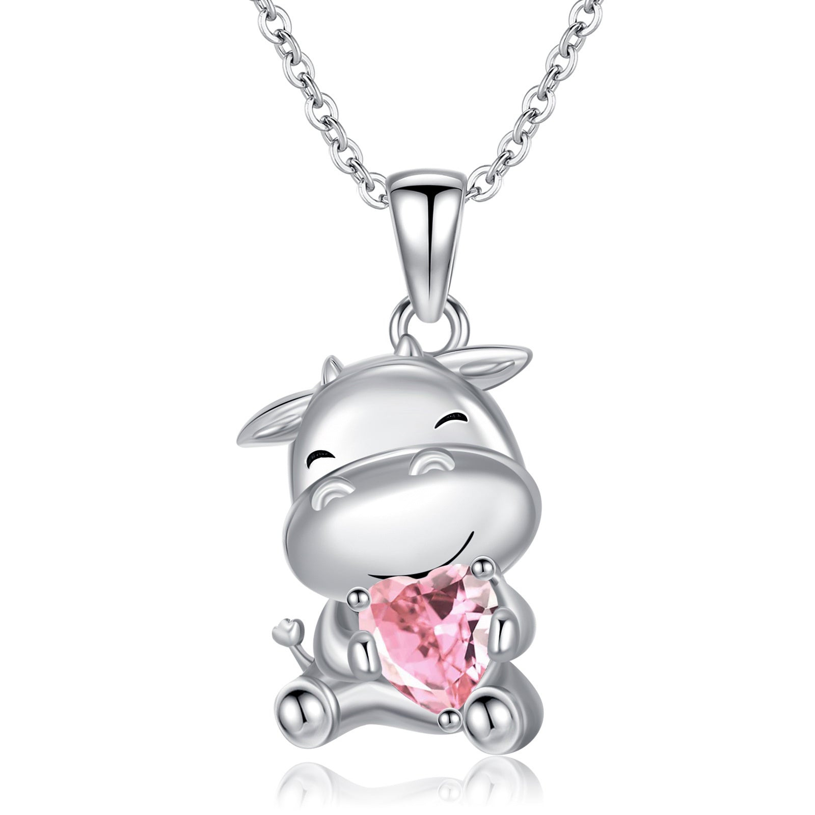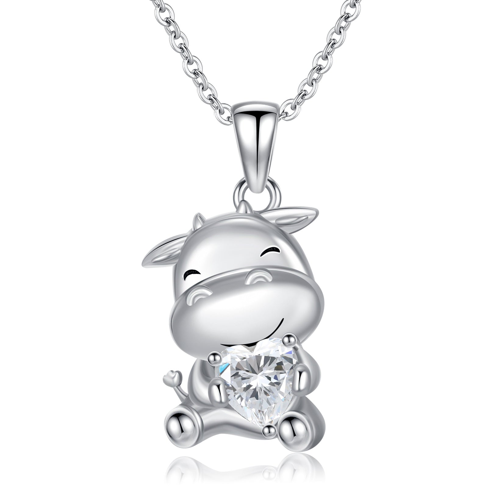 The cow is a symbol of hard work, selfless dedication, and wealth. This cow necklace has a good meaning for us. A lovely cow holding a heart shape AAA Cubic Zirconia.