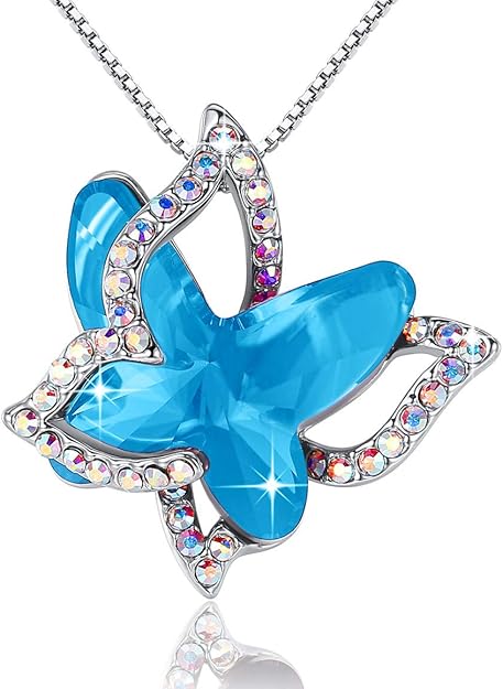 UNIQUE DESIGN: The “Spread Your Wings” design features a vibrant 3d pendant where a shiny birthstone crystal butterfly is overlaid criss-cross by a butterfly frame adorned by Crystal AB zirconia stones resulting in our wonderful butterfly necklace.